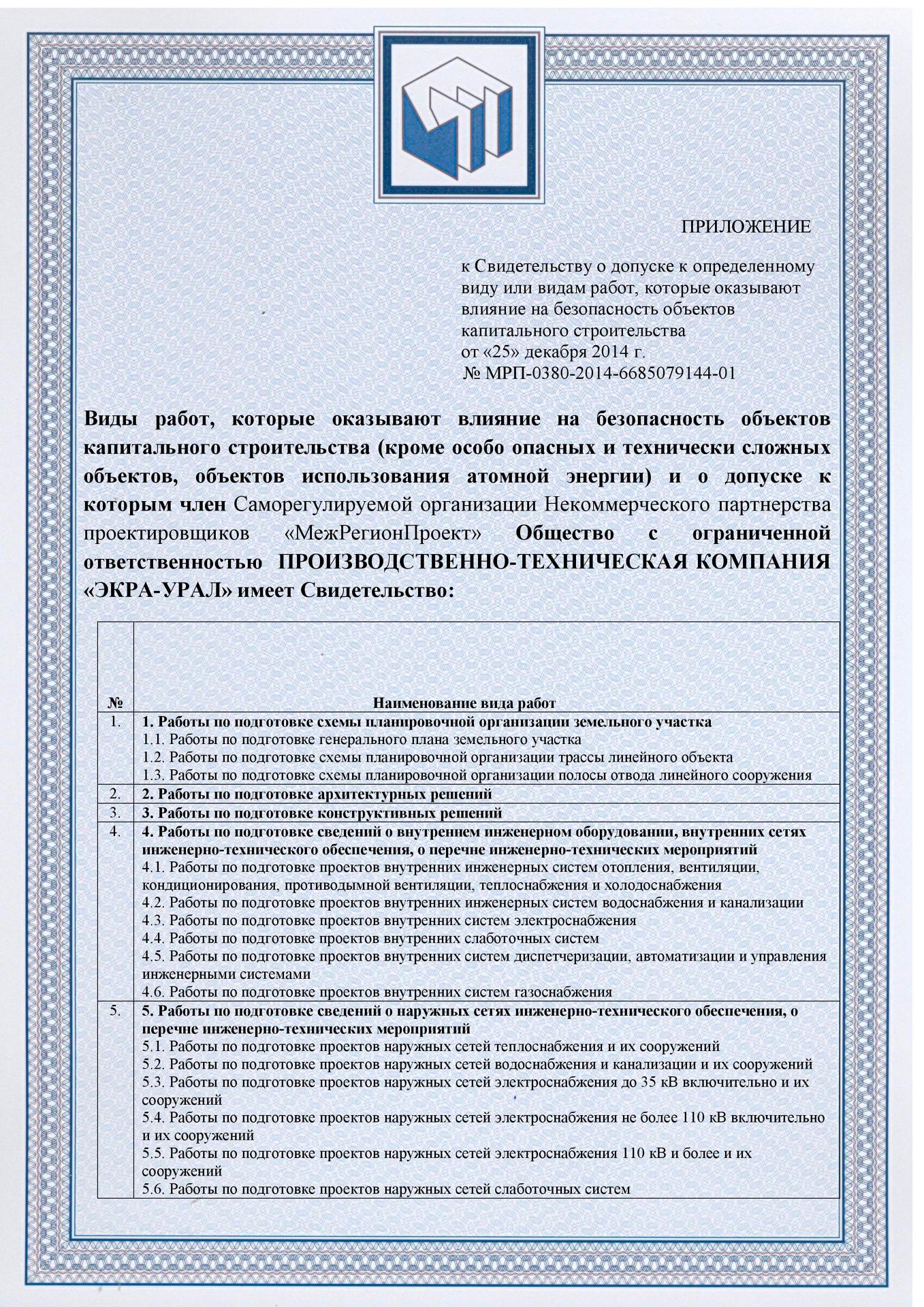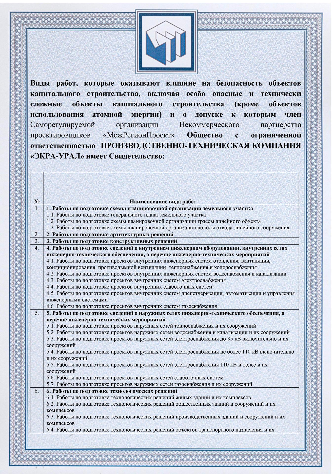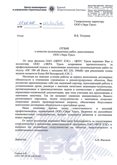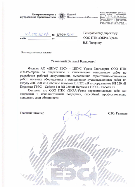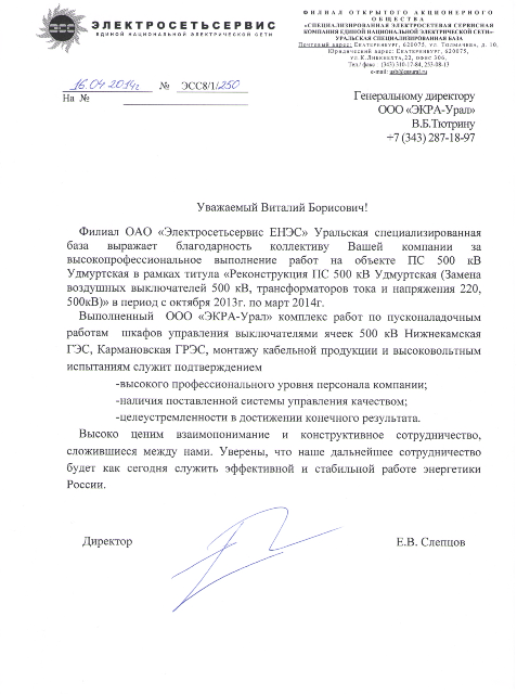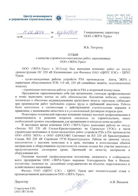 ООО ПТК «ЭКРА-Урал» имеет собственную электролабараторию, все виды работ выполняются на основании действующих лицензий и свидетельств СРО (в том числе на особо опасных объектах) и сертифицированы в Системах менеджмента качества.