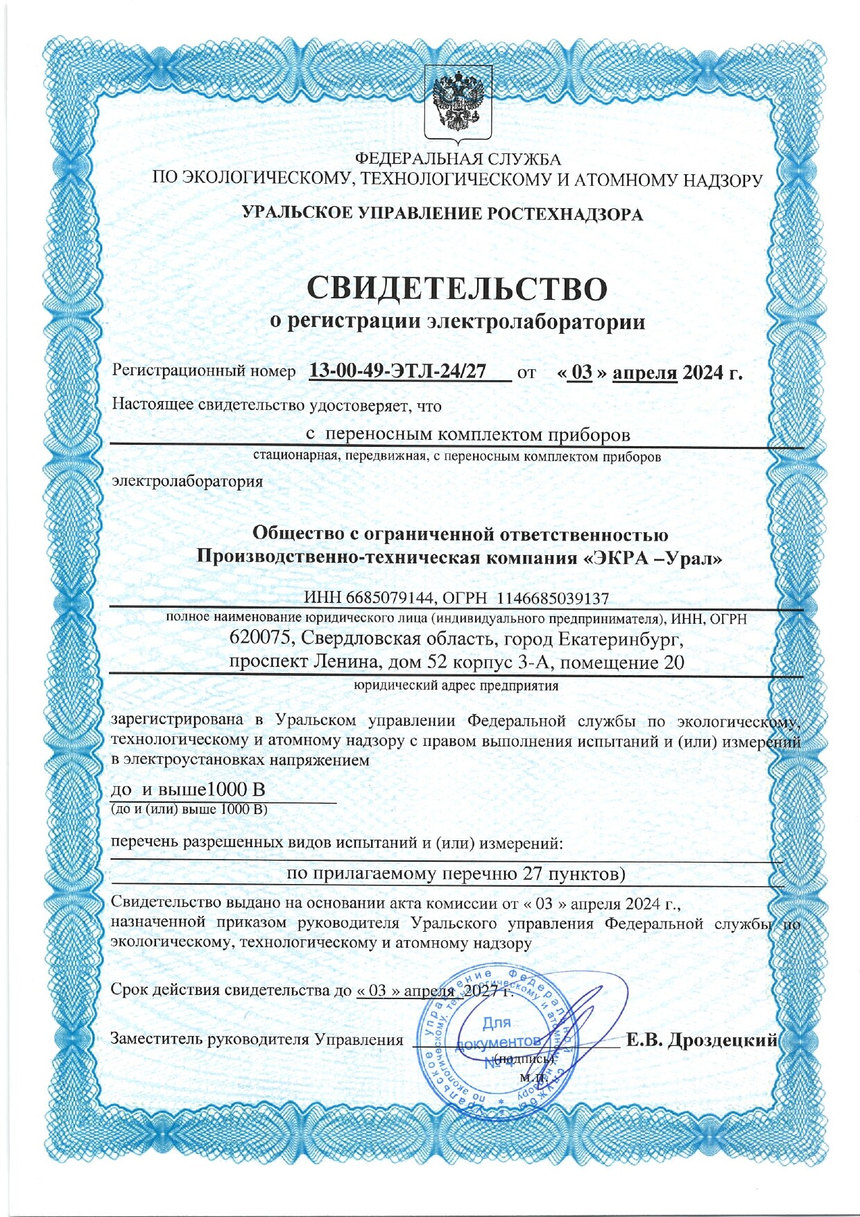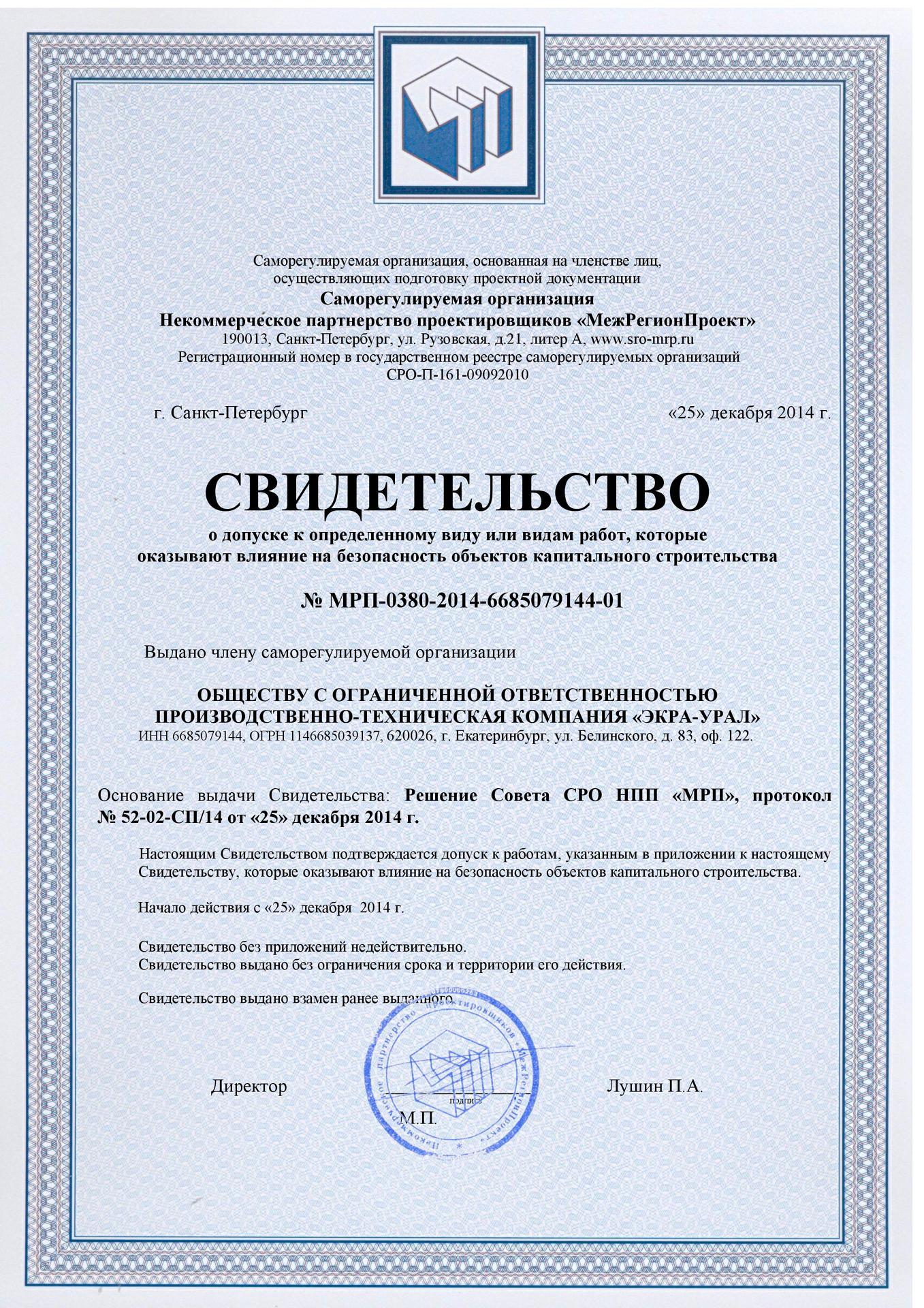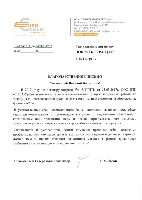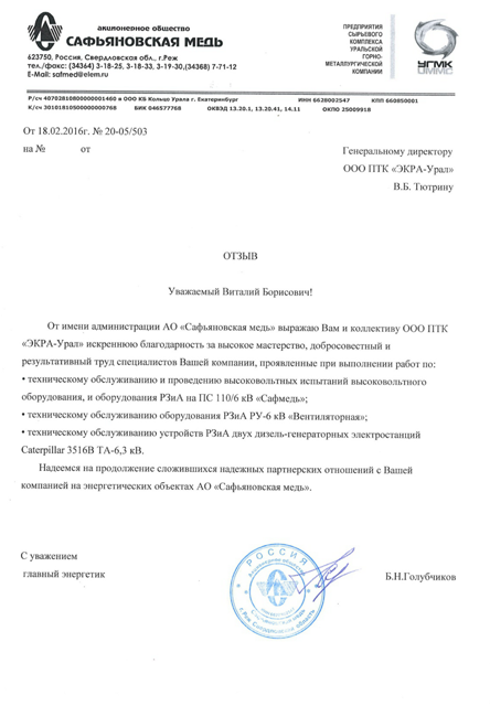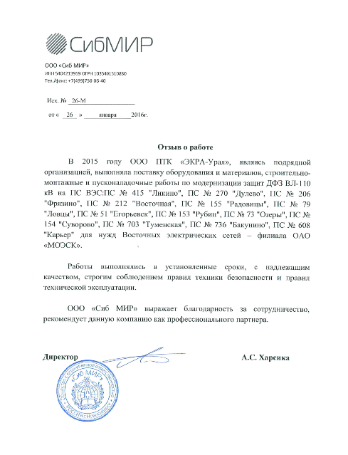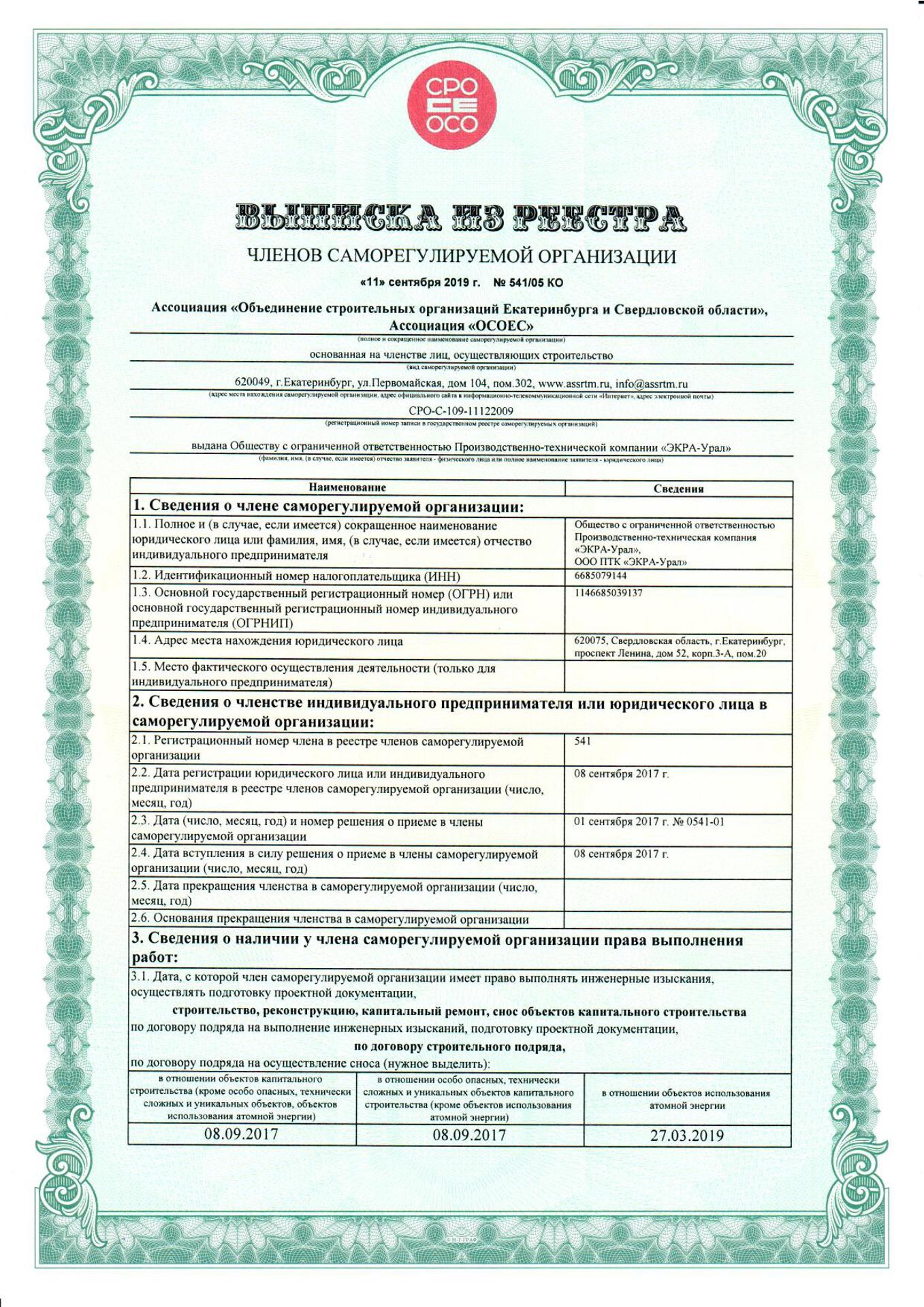 ООО ПТК «ЭКРА-Урал» имеет собственную электролабараторию, все виды работ выполняются на основании действующих лицензий и свидетельств СРО (в том числе на особо опасных объектах) и сертифицированы в Системах менеджмента качества.